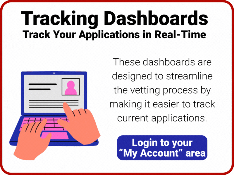 The vetting process can involve many moving parts, and it’s normal to have questions along the way. Our Chatbot is designed to streamline that experience by offering immediate, accurate, and straightforward information, right when you need it most. Whether you’re new to the process or simply unsure about one detail, the Chatbot can provide clear, accurate guidance within seconds.
